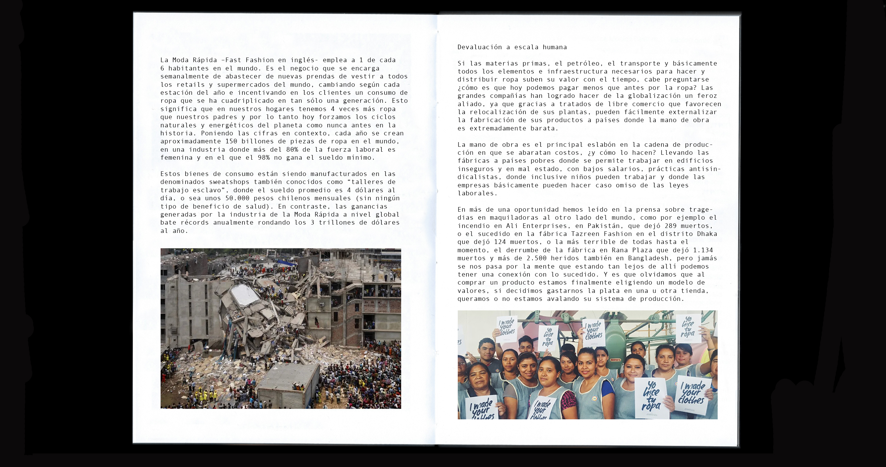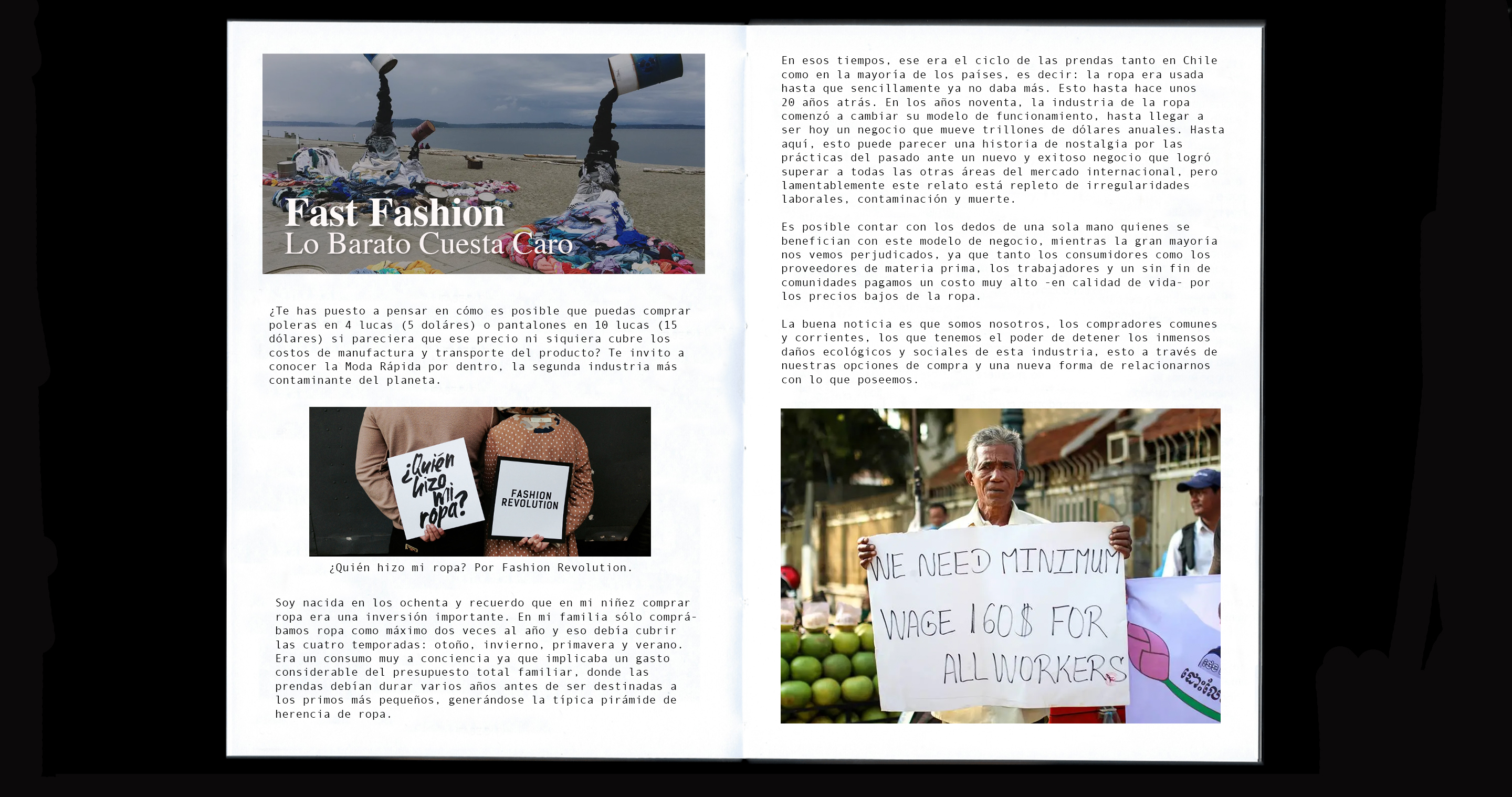 Artículo para Revista “Endémico” donde se exploran las mecánicas detrás de la moda desechable que reina el mercado del retail hoy en día, y las terribles consecuencias que provocan en proveedores y comunidades.